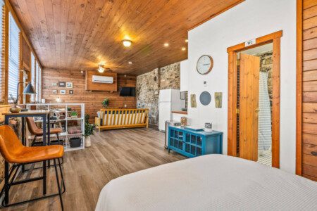 Discover the charm of downtown Luray from our pet-friendly studio. Nestled on the Hawksbill Greenway, step right out your front door to the park or stroll to coffee shops, breakfast spots, and antique shops. Enjoy a cozy retreat with beautiful exposed stone and kitchenette. Perfect for couples and their furry friends, we welcome up to two dogs, making it an ideal destination for pet-loving travelers. Book now for a memorable getaway and experience the best of Luray’s downtown and natural beauty!
